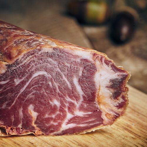 La presa es una de las piezas más jugosas y tiernas del cerdo ibérico, cualidades que la convierten, tras seis meses de curación, en uno de los productos más sabrosos y demandados, comparable únicamente con nuestro Jamón de Bellota 100% ibérico.